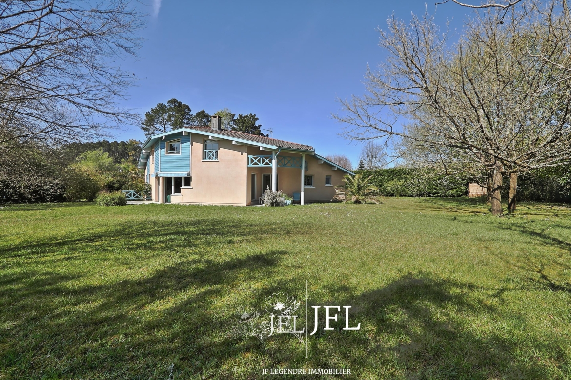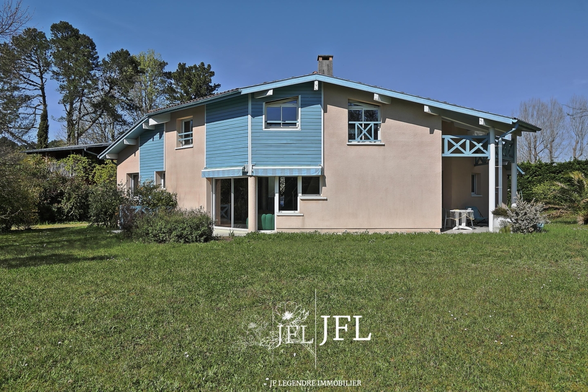 Magnifique villa d’architecte, idéalement située au centre de Seignosse dans un quartier très calme et sans vis-à-vis.