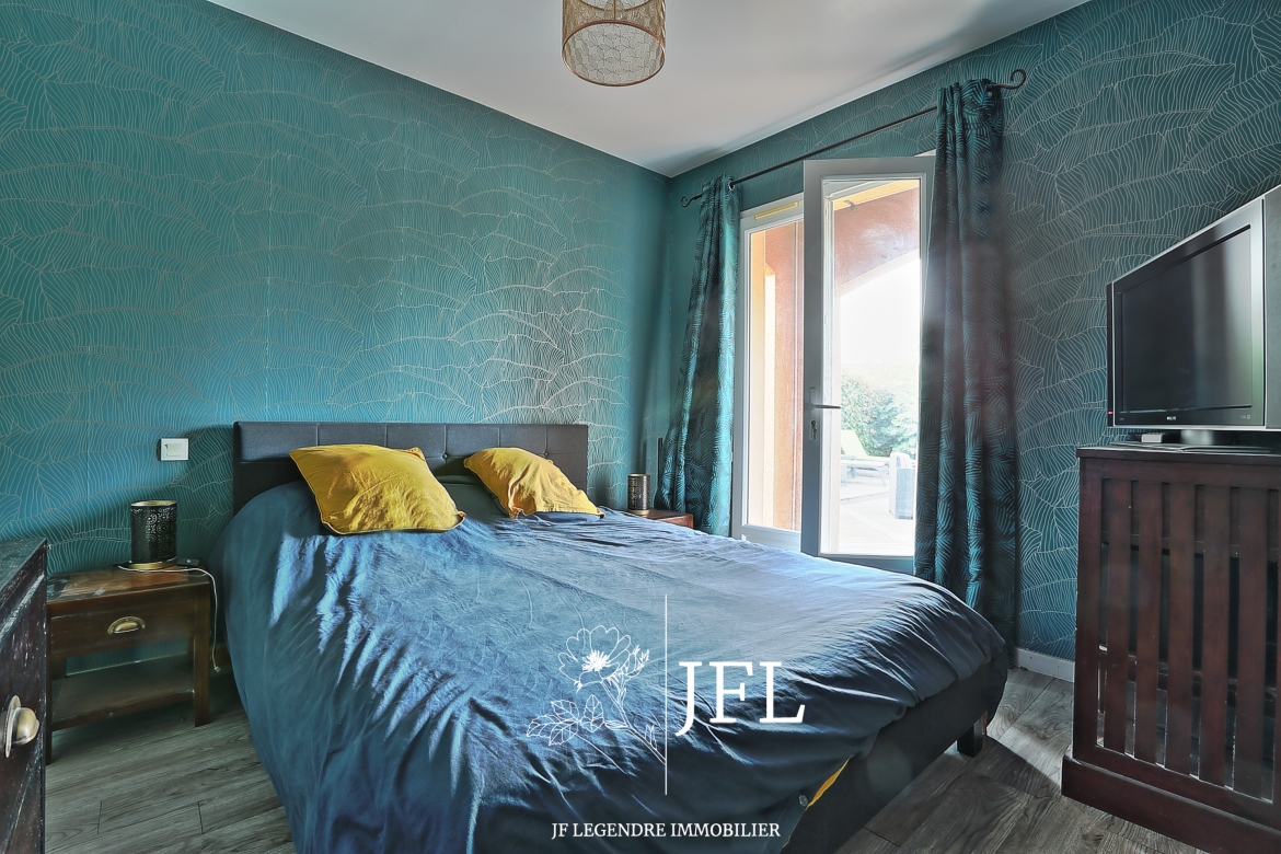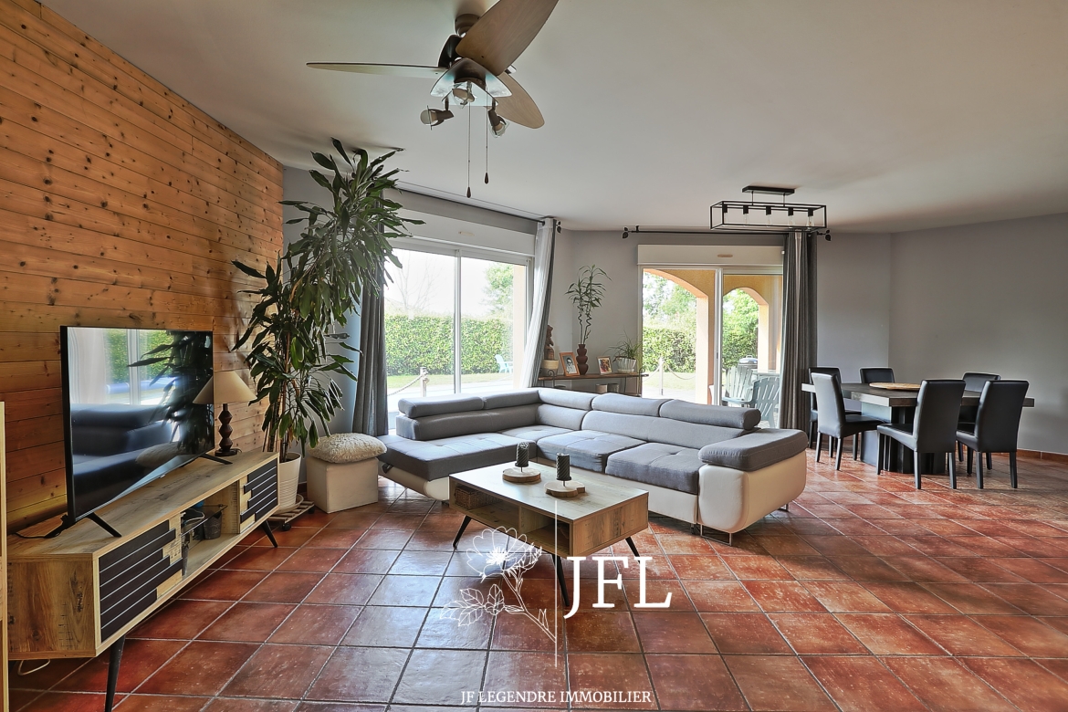 Le tout est implanté sur un terrain de 840 m² arboré et clôturé avec portail électrique.